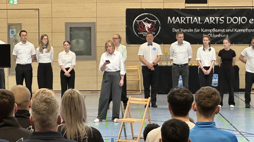 Im Anschluss hielten Eva-Maria Sündermann (Vizepräsidentin Breitensport der WAKO Niedersachsen) sowie die Bürgermeisterin der Stadt Oldenburg, Nicole Piechotta, ihre Eröffnungsreden und begrüßten die zahlreichen Teilnehmenden und Gäste.